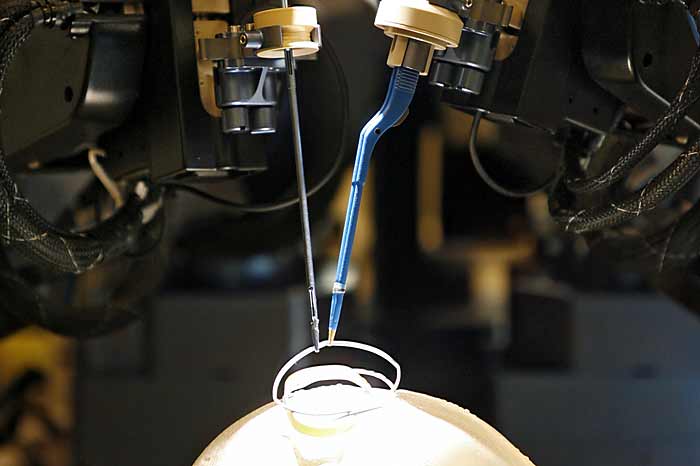 This surgical device was designed and made in collaboration with MDA, a well-known company to participate with the NASA in the development of the robotic arm Canadarm2, used in the space shuttles. The project began in 2001, had a cost of 2 million dollars, mainly provided by B.J. and Don Seaman.